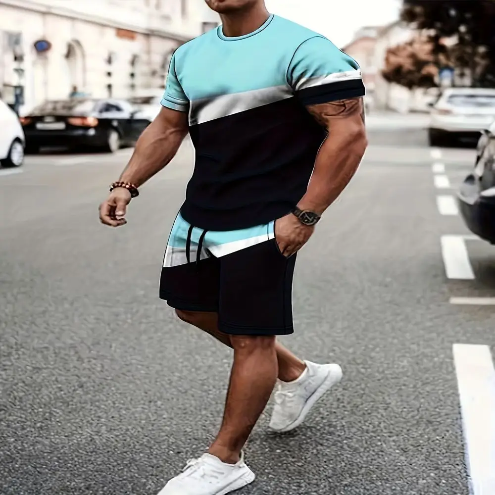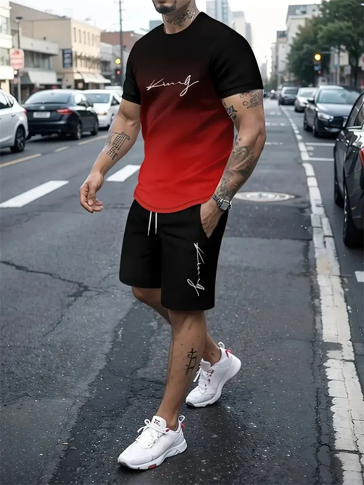 2025 new summer men's sportswear, men's loose fashion clothing, 3D printed T-shirt shorts, men's simple clothing fashion set, li