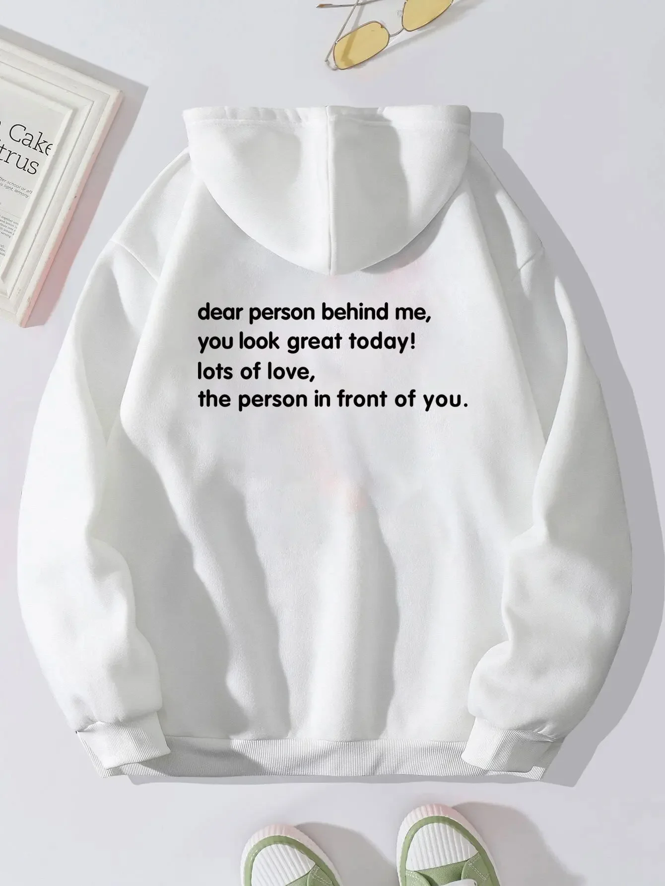 Foreign trade women plus velvet sweatshirt slogan letter printing kangaroo pocket drawstring print hoodie