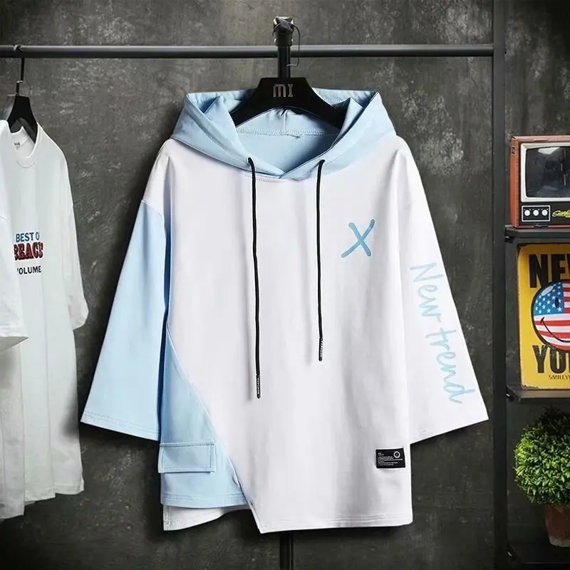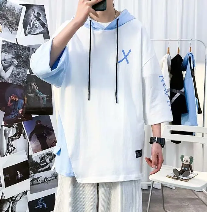Men Hooded T-Shirt 2021 Korean Men's Fashion T-shirts Summer Outdoor Casual Short-sleeved Hip-hop Men's Clothing Streetwear Men