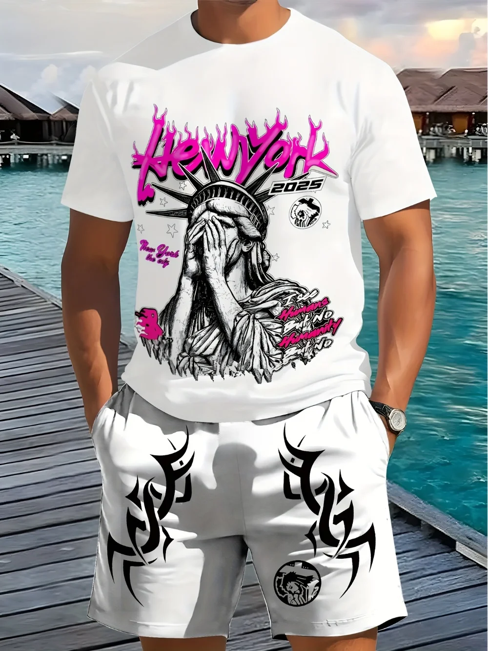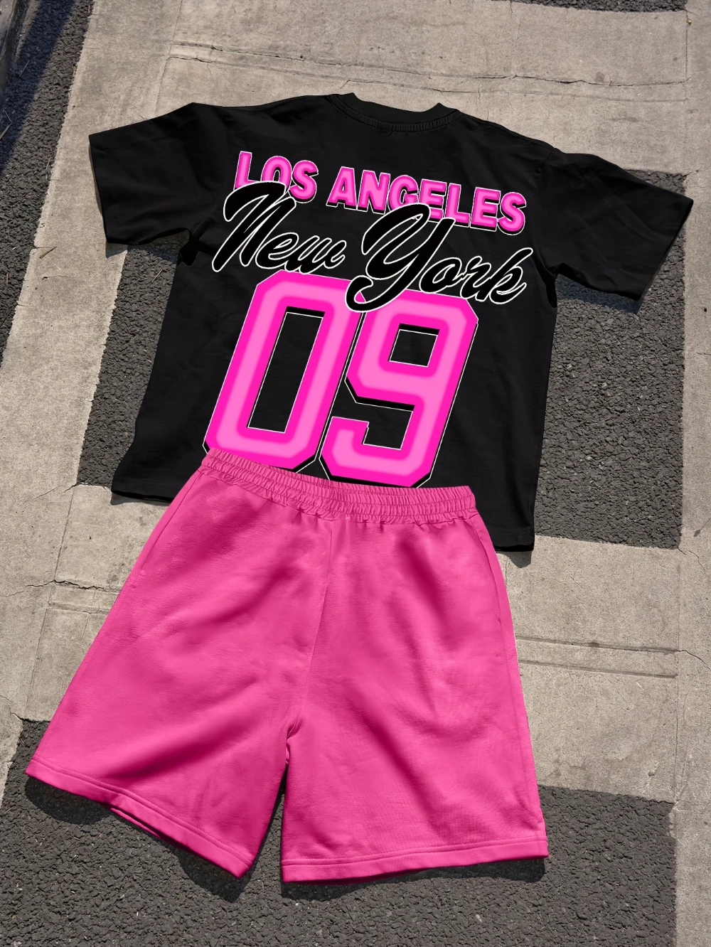 Men's 2-Piece Letter-printed Crew Neck Short-sleeved T-shirt And Shorts Set Light Breathable For Summer Trendy Street Style Wear