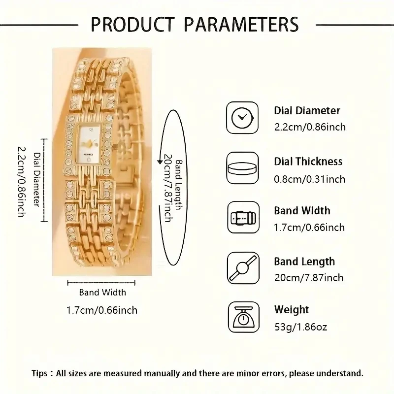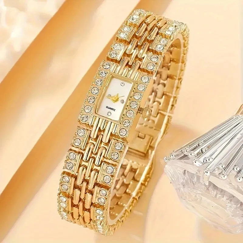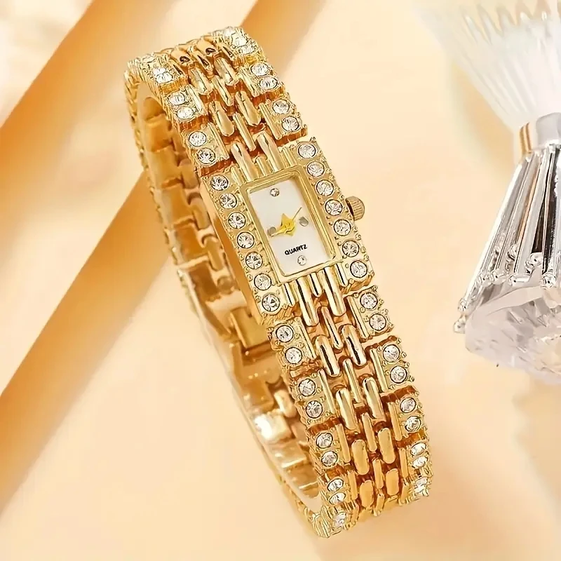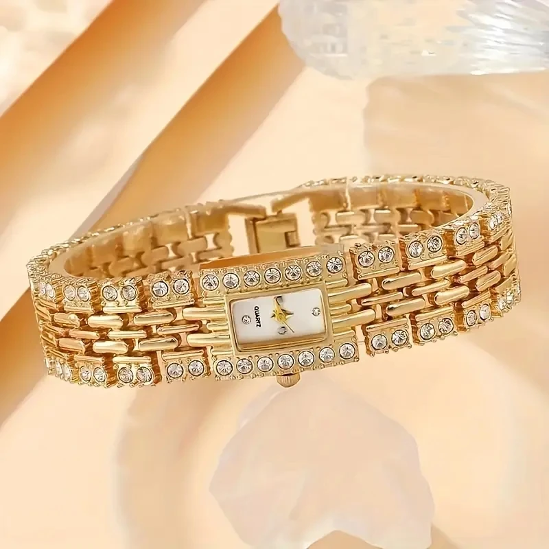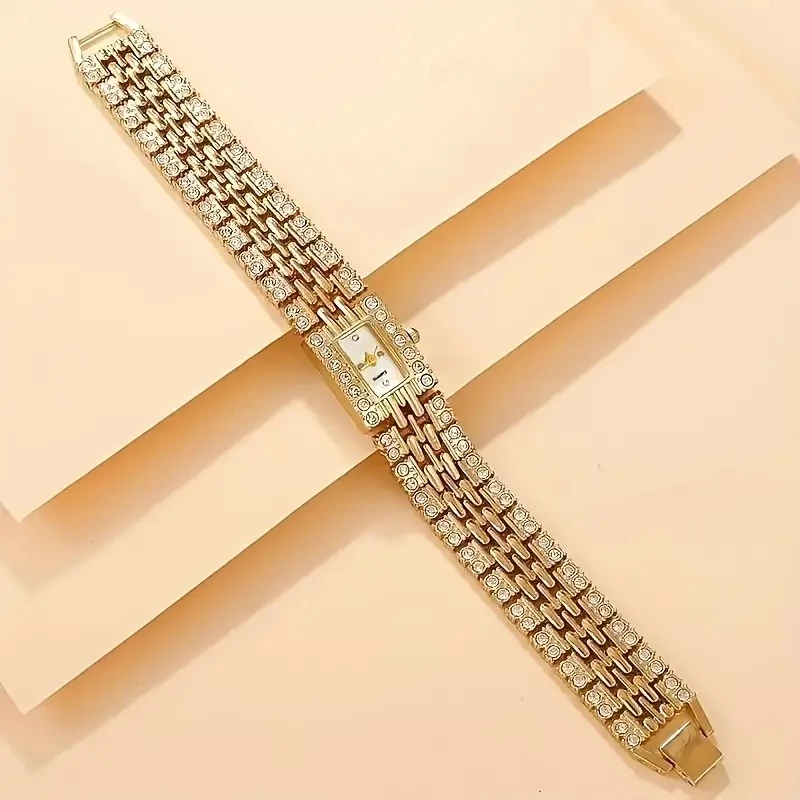 Women's Watch Fashion Rectangular Compact Diamond Set Noble Gold Bracelet Watch